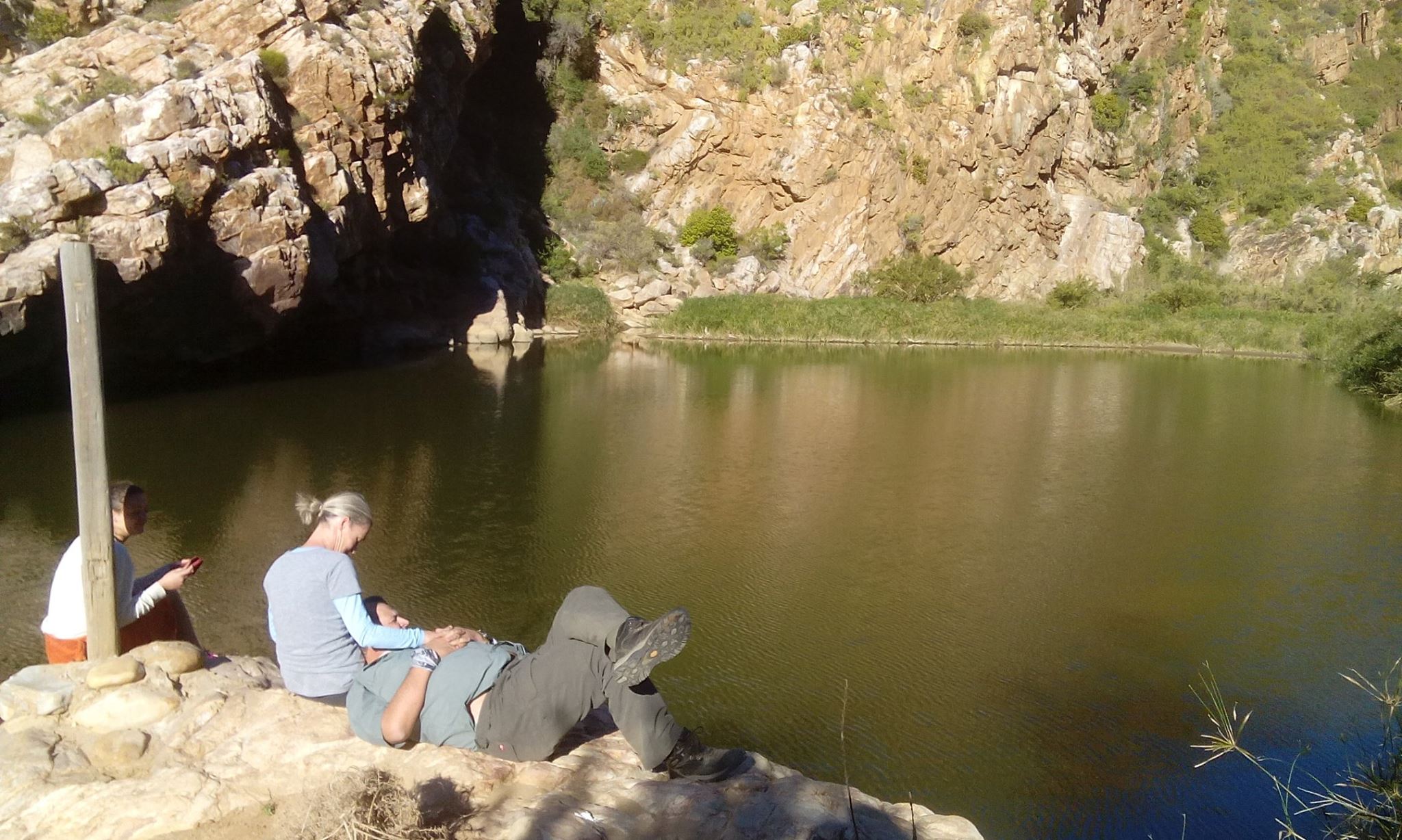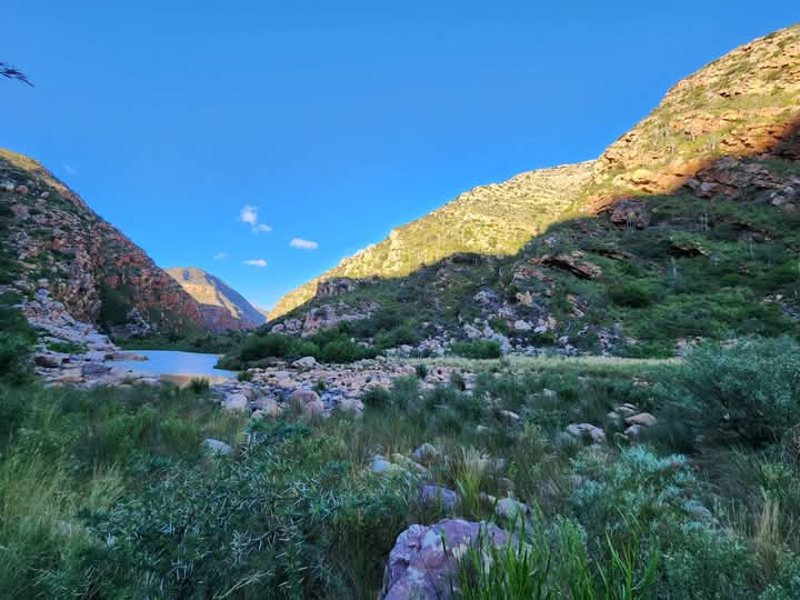 Located on the banks of a large waterhole, ideal for swimming, the Blougat Cave provides a raw and authentic experience. The cave is small and rugged, accommodating groups of 2 to 5 people. It is not cozy by modern standards, but rather offers a chance to step back in time and experience life in its most elemental form, much like the Bushmen would have. A moderate fitness level is required for the 45-minute hike, which includes some boulder hopping to reach the cave.