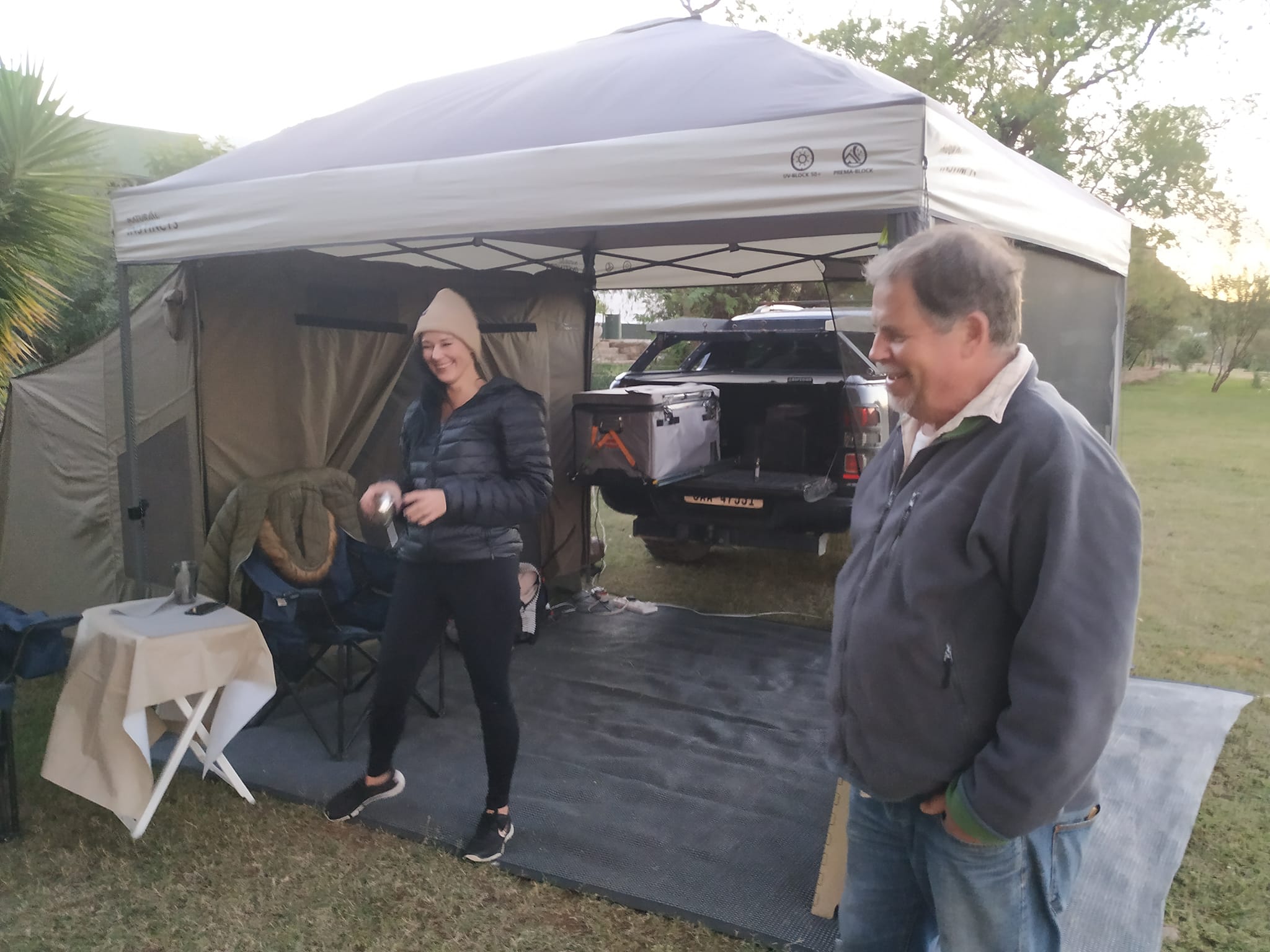 The facility includes a fully-equipped kitchen, an ablution block capable of accommodating up to 200 people, a refreshing splash pool, and a relaxation area for socializing and unwinding after a day of exploration. Large groups—such as those here for 4x4 events, horse riding tours, or family gatherings—can make use of the hall for meals or group activities, with space for up to 100 people.