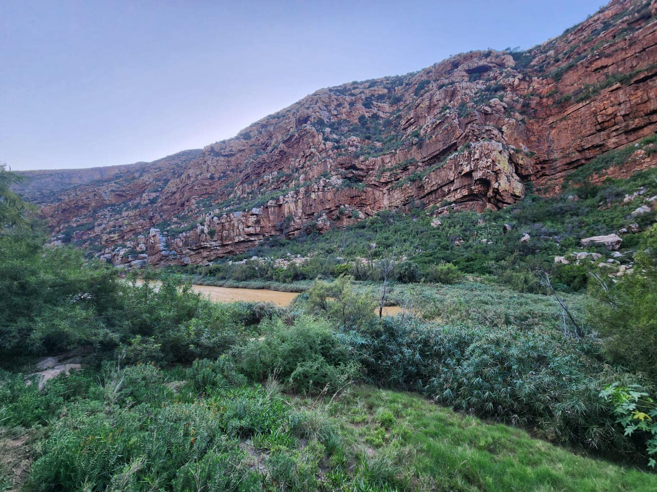 This day’s hike takes you up and over Paardenberg, with panoramic views of Cockscomb Mountain to the east and the Camdeboo plains to the north. Along the way, you’ll encounter wildflowers and the occasional cycad. The route then descends, partly on a jeep track, to Die Afdak, Situated right on the banks of the Groot River, this fully equipped cottage is tucked under some trees, offering a lovely veranda, a braai area, and a peaceful setting for a night’s rest. The hospitality here is exceptional, and hikers can pre-arrange braai packs and drinks with Anine Rathbone, who, along with her husband Bennie, will ensure you feel right at home.